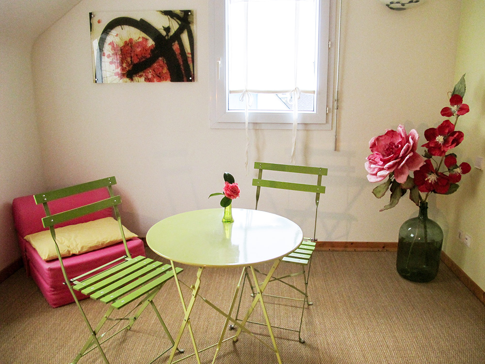 La chambre Rozenn comprend une salle de bain privative avec baignoire et WC au premier étage de notre maison. Vous y bénéficierez de la vue sur notre joli jardin et le clocher du bourg. Avec deux fenêtres exposées Sud et Ouest, la chambre est lumineuse et ensoleillée toute la journée.